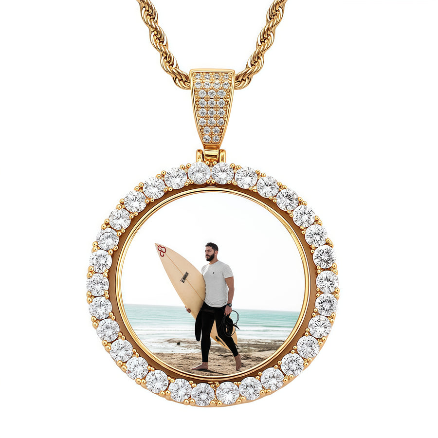 Iced Out Double-Sided Round Flip Pendant – Gold Finish