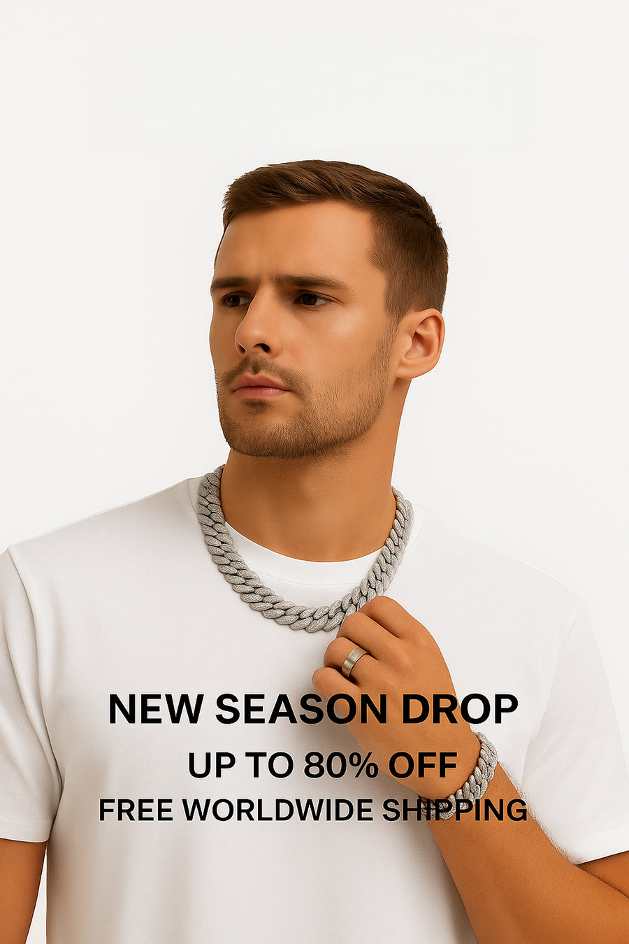 10mm Iced Cuban Link Chain Set – Silver Finish