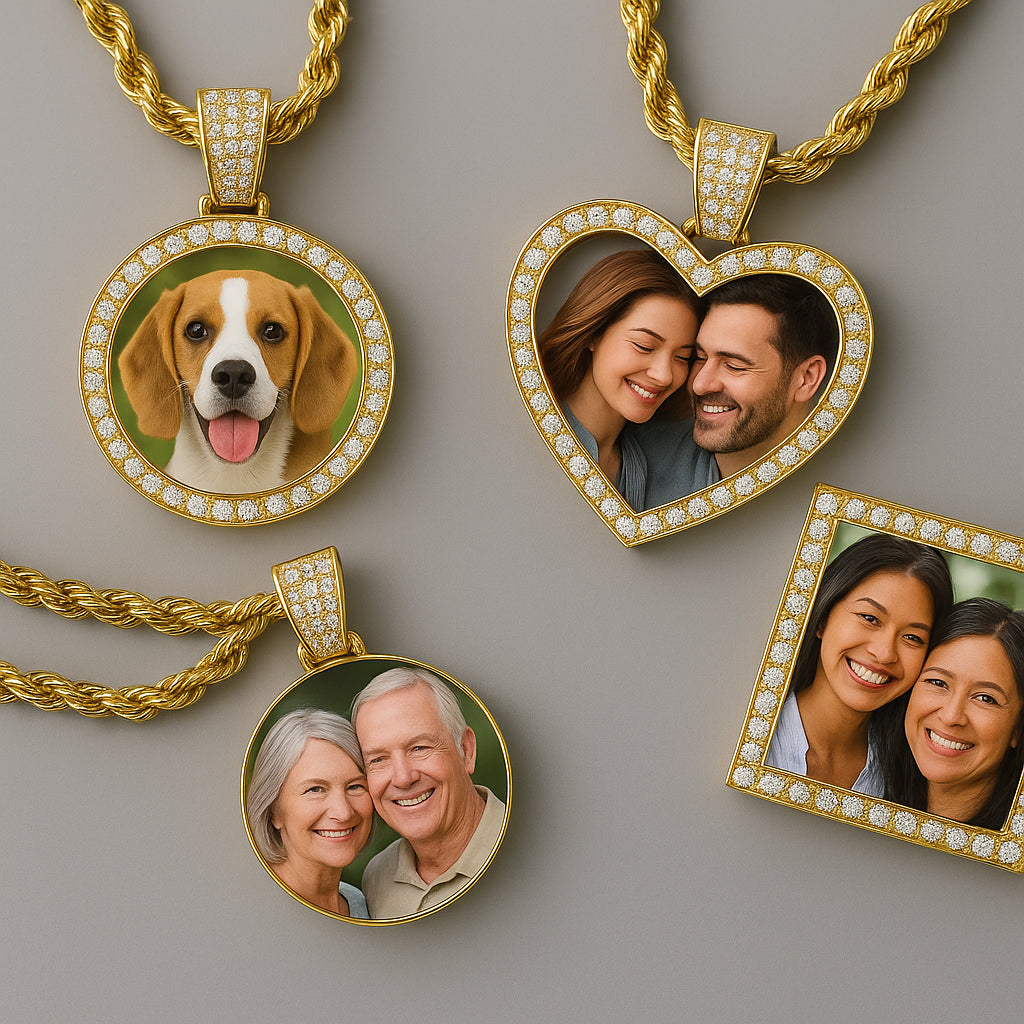 Iced Out Double-Sided Round Flip Pendant – Gold Finish