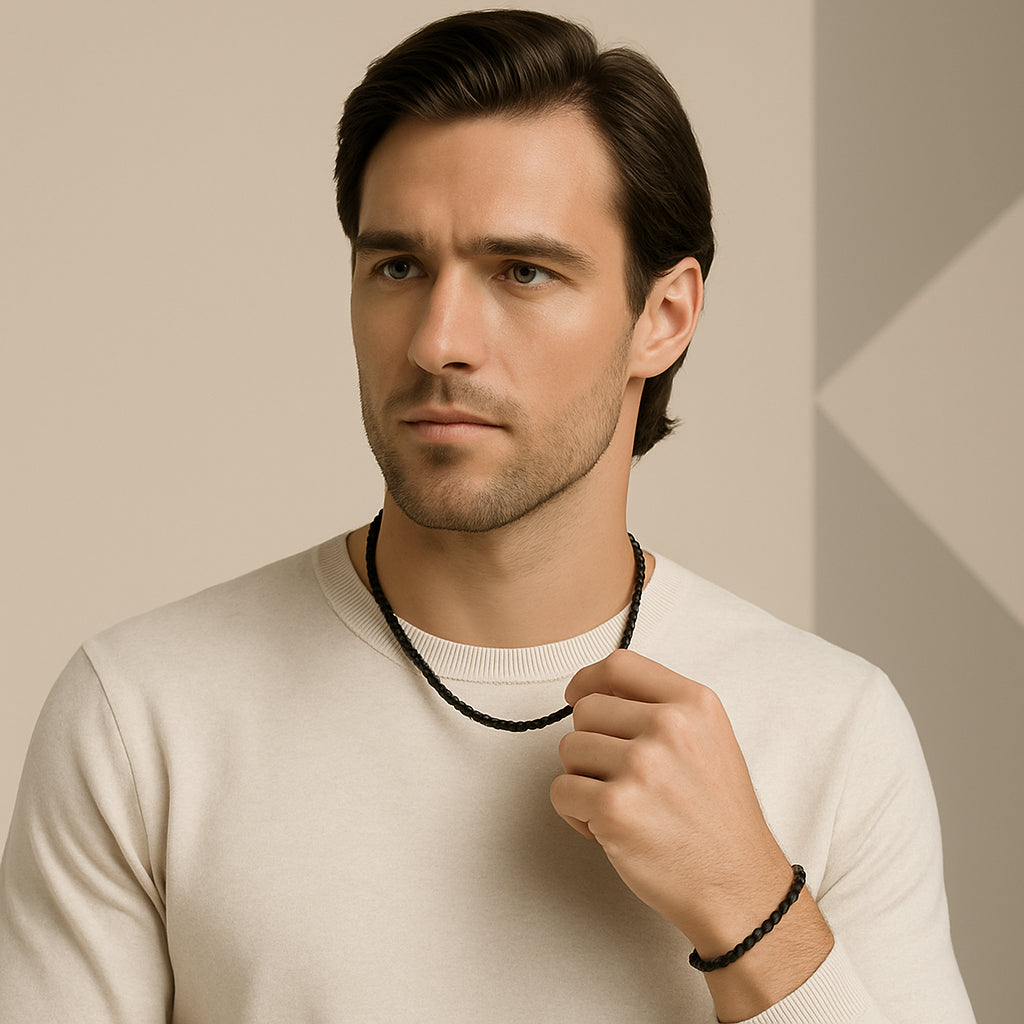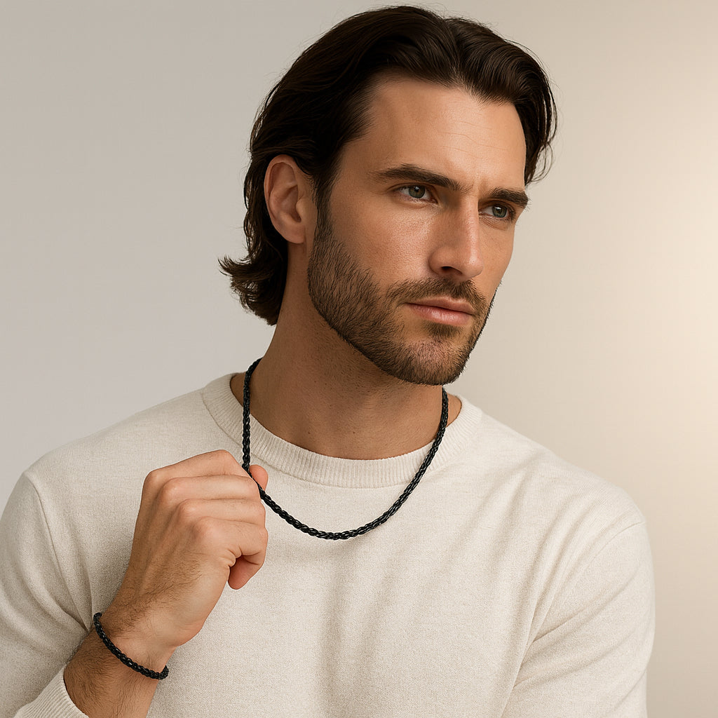 This 3mm rope chain set includes both a chain and matching bracelet, featuring a durable black PVD coating that delivers the rich tone of black gold with superior scratch resistance. Its twisted rope design adds strength and flexibility, perfect for layering or everyday wear. A standout in men's jewelry, this set expands collections of men's chains and men's bracelets, bringing a sleek, modern edge to any outfit.
