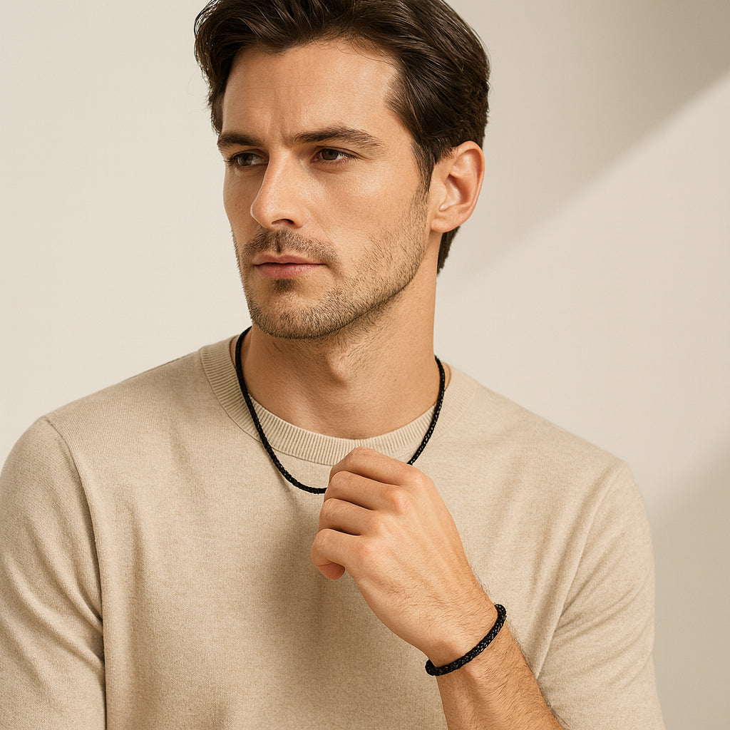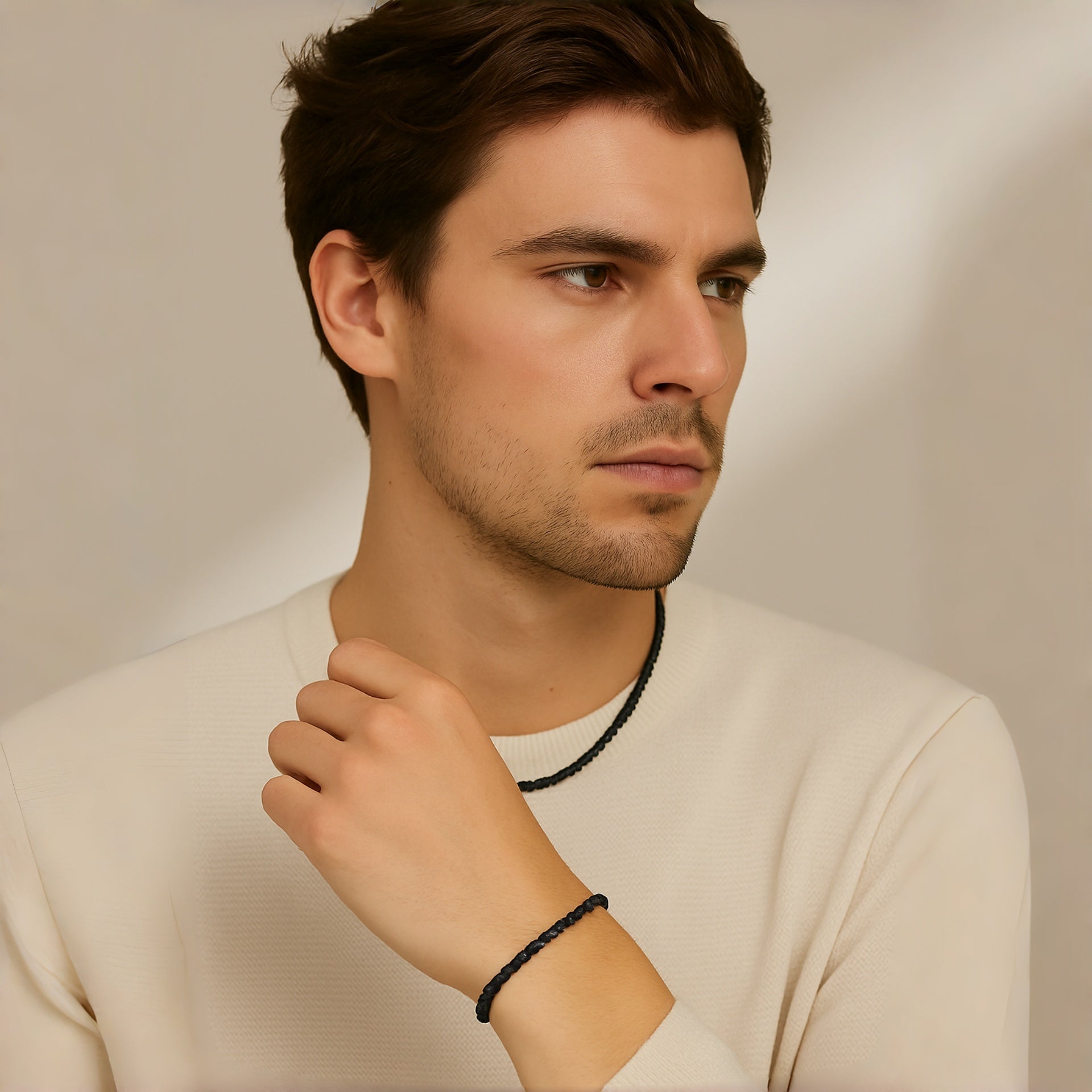 This 4mm rope chain set includes both a chain and matching bracelet, finished with a black PVD coating that gives the deep luster of black gold and superior scratch resistance. The twisted rope design blends strength with refined style, perfect for layering or wearing solo. A standout in men's jewelry, this set expands collections of men's chains and men's bracelets, adding a bold luxury edge to any outfit.