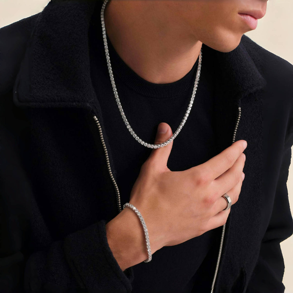 4mm Tennis Chain Set – Silver Finish