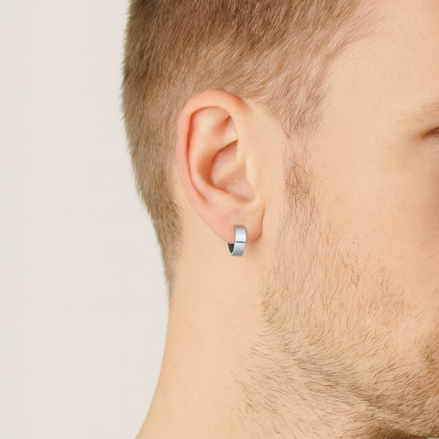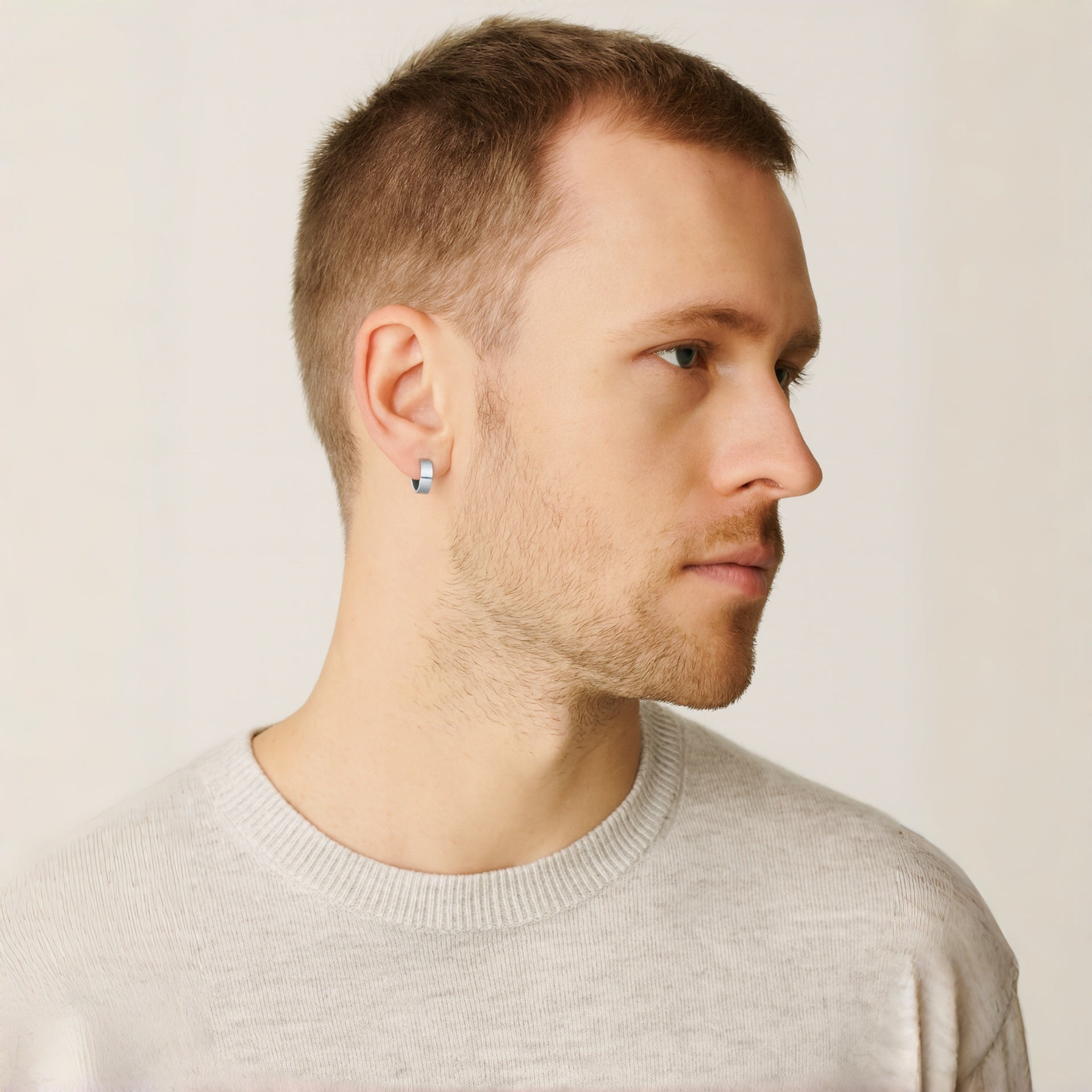 These refined men's jewelry Hoop men's earrings are crafted from solid 925 sterling silver with a durable rhodium finish for long-lasting shine. The clean circular design delivers a modern, minimal look suitable for both daily wear and elevated styling. Perfect for men seeking understated elegance, these hoops add confident sophistication to any outfit.