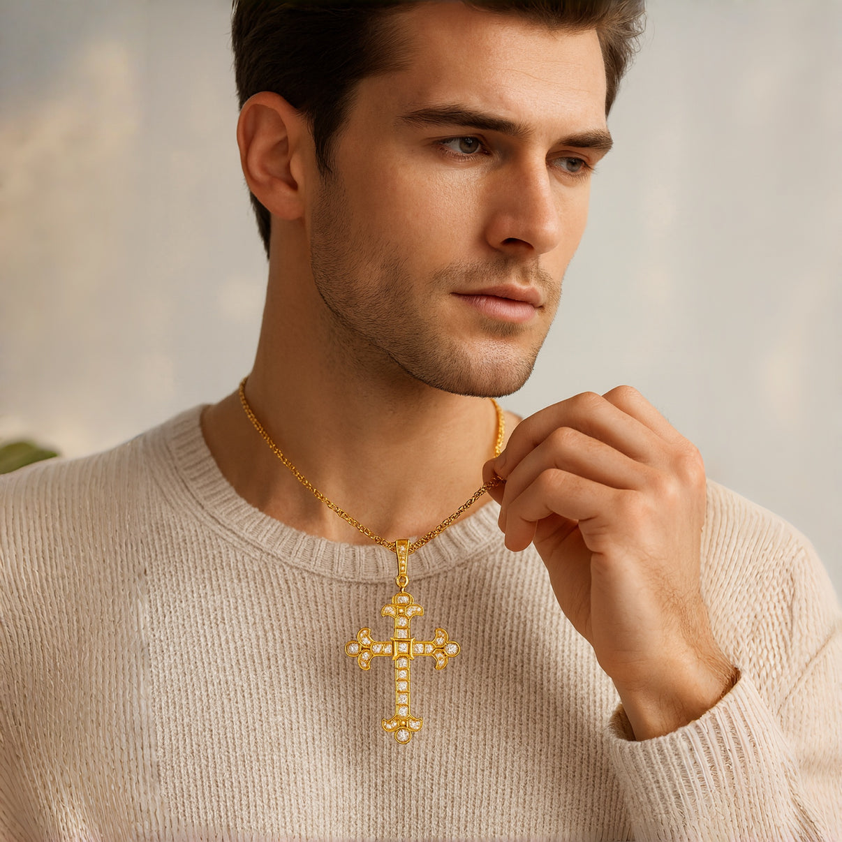 This elegant men's jewelry design showcases a Vintage Iced Cross men's pendants style crafted from solid 925 sterling silver with a rich 14K gold finish. The retro details and shimmering stones create a bold yet timeless character. Perfect for men who appreciate meaningful craftsmanship, this pendant adds depth, style, and confident charm to any look.